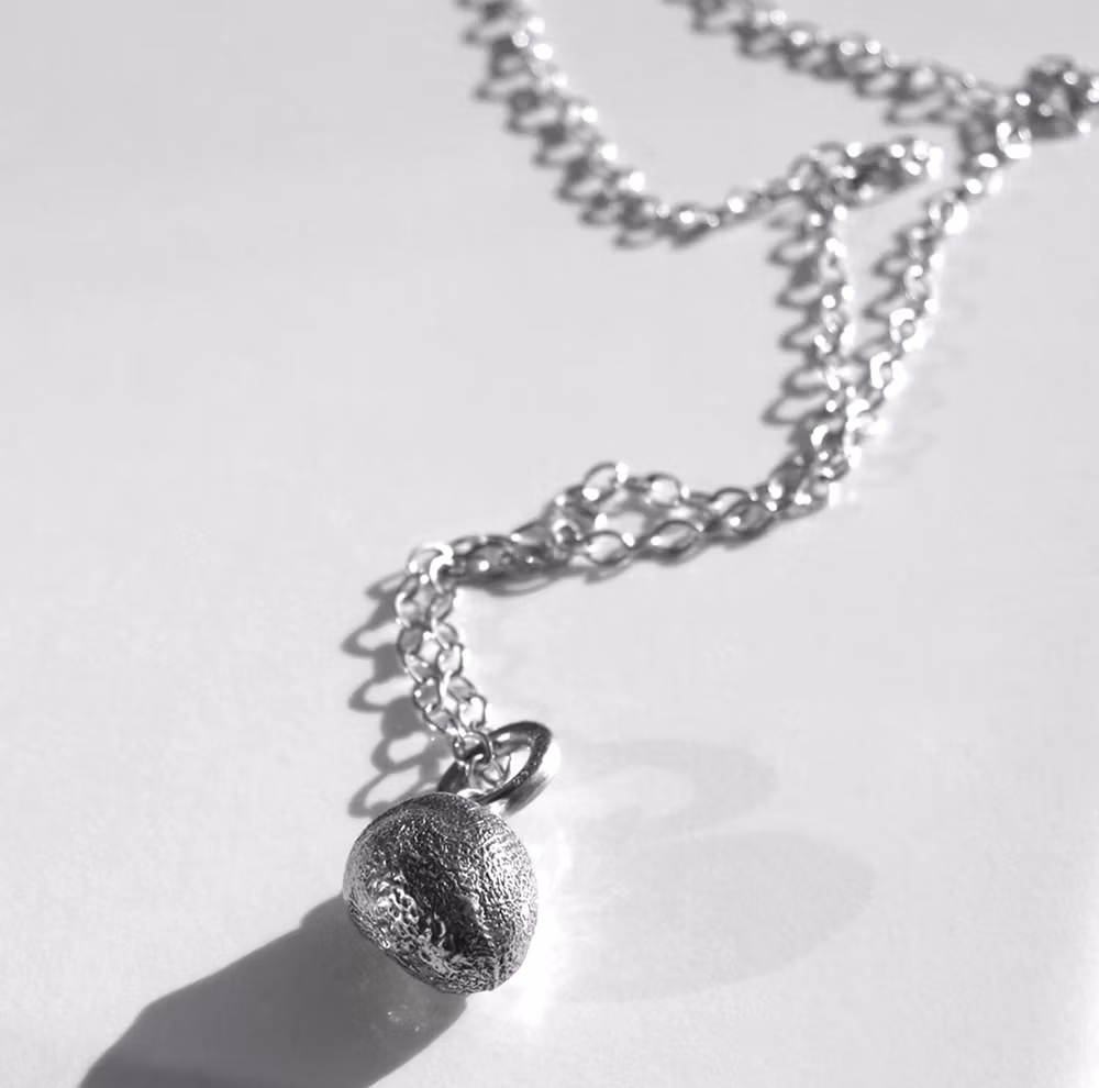 Infinity mini-kastanj silverberlock nr 220. 9 gram, ca 7x14 mm, (med ring ca 24 mm). Varje smycke är unikt och varje liten kastanj är sitt eget original. Det finns alltid bara en av varje, men ibland flera liknande. I den här lilla kastanjen finns all kraft och styrka som behövs för att växa till ett kastanje-träd som kan bli många hundra år gammalt. Genom att föreviga kastanjen i silver är min tanke att den ska dela med sig av styrkan och kraften till den som bär berlocken de dagar det behövs, men samtidigt en påminnelse om att vi alla har styrkan och kraften i oss själva. Det nummer som syns på en del smycken är bara ett nummer för att hålla isär dem. I serierna Flower Power och Infinity finns det alltid bara en av varje. Det är en kastanj eller blomma som är förevigad och just den du köper kommer alltid bara finnas i det exemplaret. Design och formgivning Marie-form925. Inspiration från den svenska naturen och tillverkade i Sverige